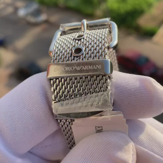 Discover the Emporio Armani Silver Luigi a premium chronograph men’s watch with a 43mm case, blue dial, stainless steel strap, and reliable high-end machinery. Perfect for formal wear. COD available in India.