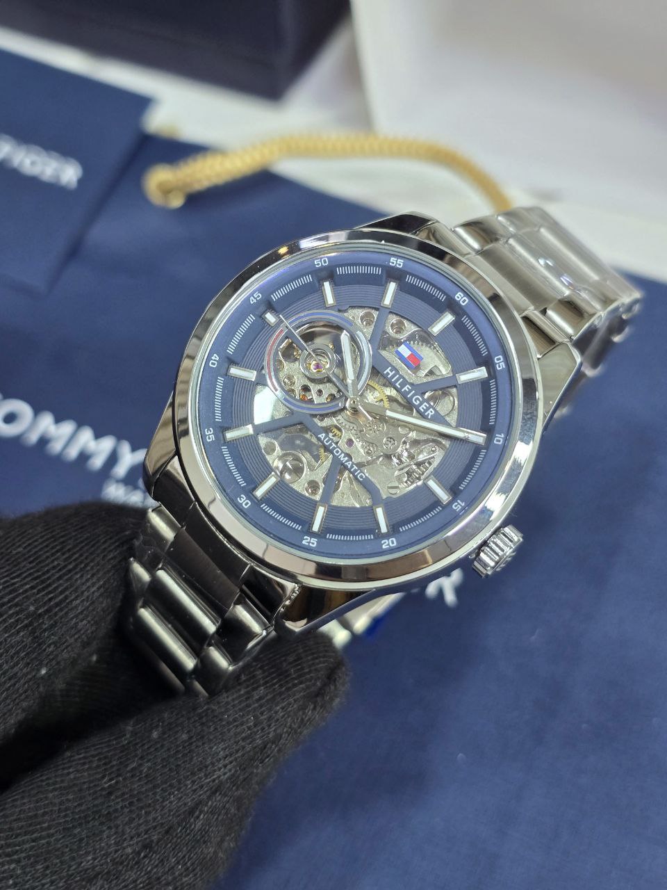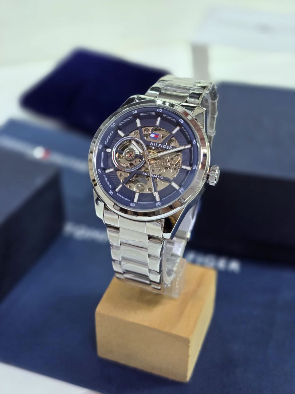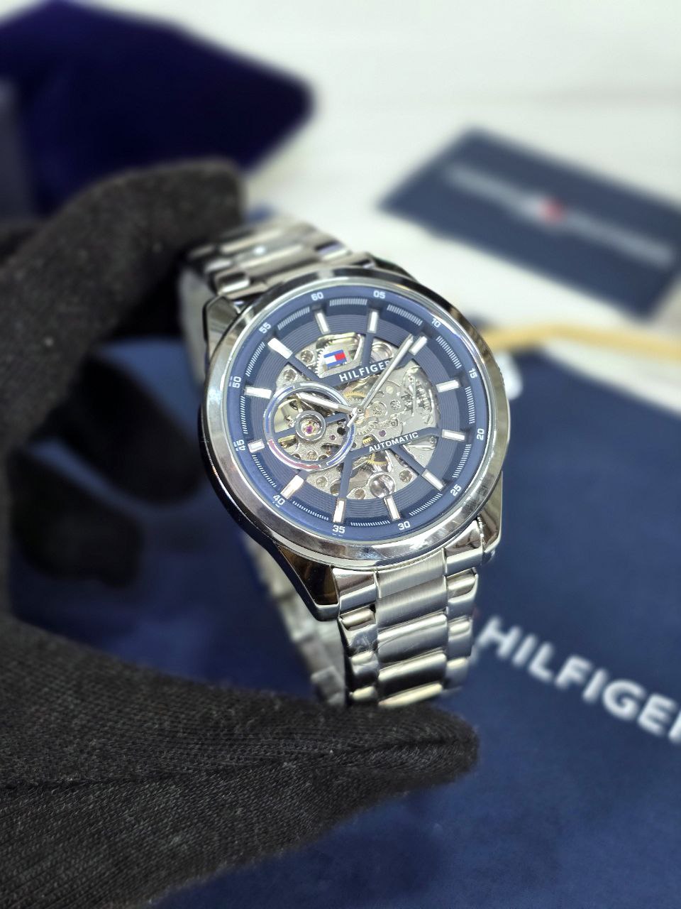 Elevate your style with the Tommy Hilfiger Open Heart Automatic Watch, a premium timepiece for men who value sophistication, precision, and elegance. From the 7AA Premium Collection, this masterpiece features a bold 43mm stainless steel dial, a 22mm premium strap, and an exquisite open-heart design that showcases the beauty of its authentic Japanese automatic movement.