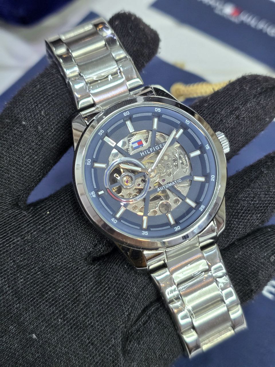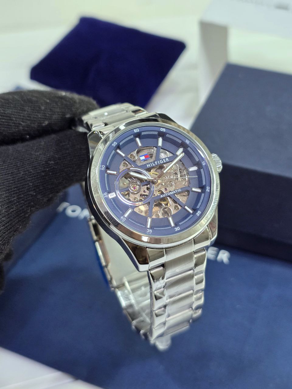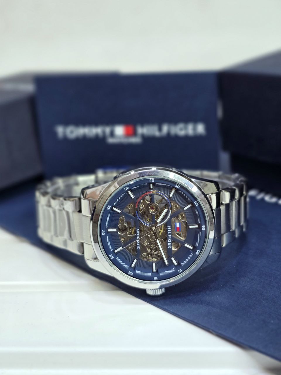 Elevate your style with the Tommy Hilfiger Open Heart Automatic Watch, a premium timepiece for men who value sophistication, precision, and elegance. From the 7AA Premium Collection, this masterpiece features a bold 43mm stainless steel dial, a 22mm premium strap, and an exquisite open-heart design that showcases the beauty of its authentic Japanese automatic movement.